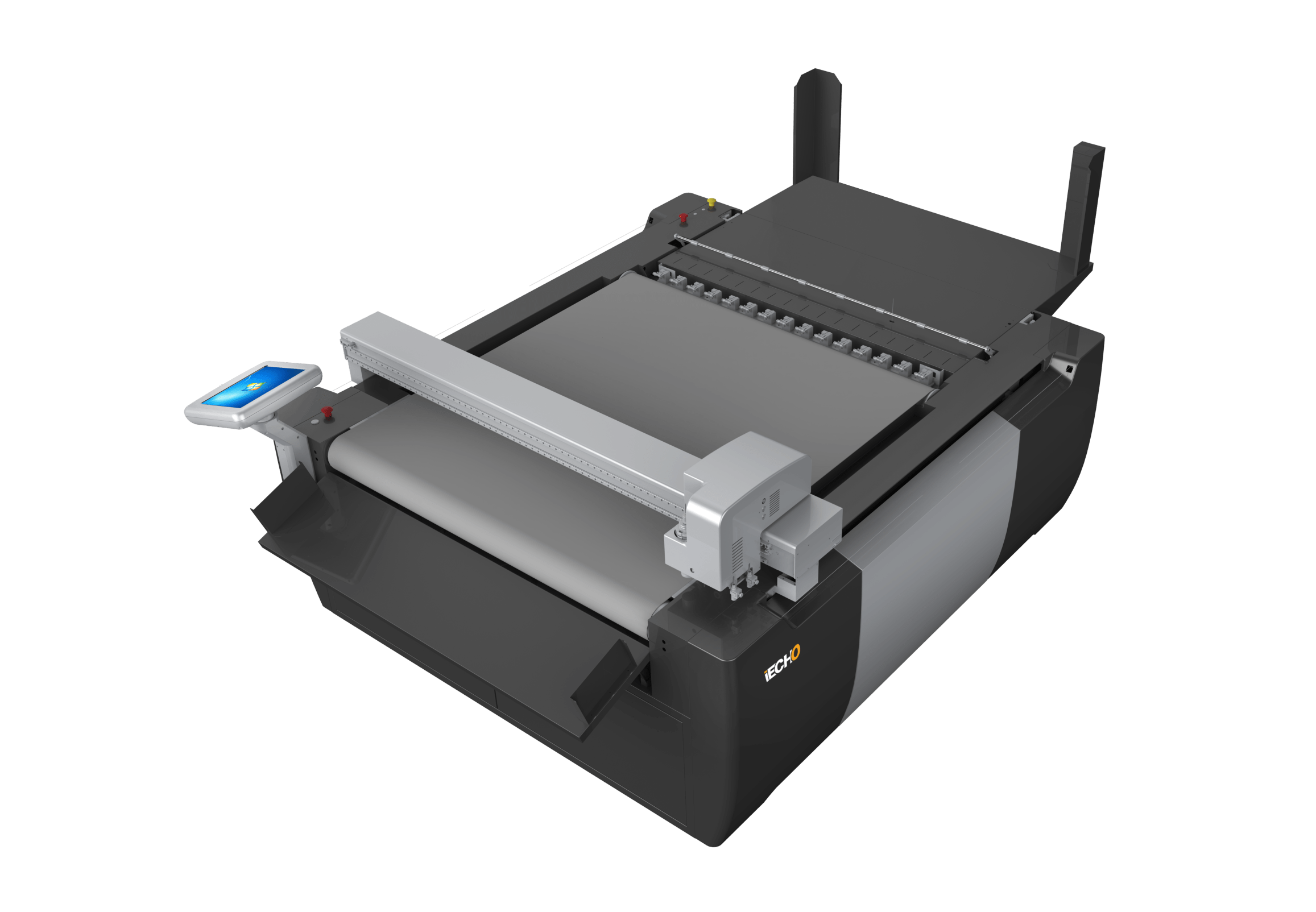 - Seadme juhtimine toimub läbi iEcho tarkvara, mis toetab ka lõikefailide QR-koodi skanneerimist.